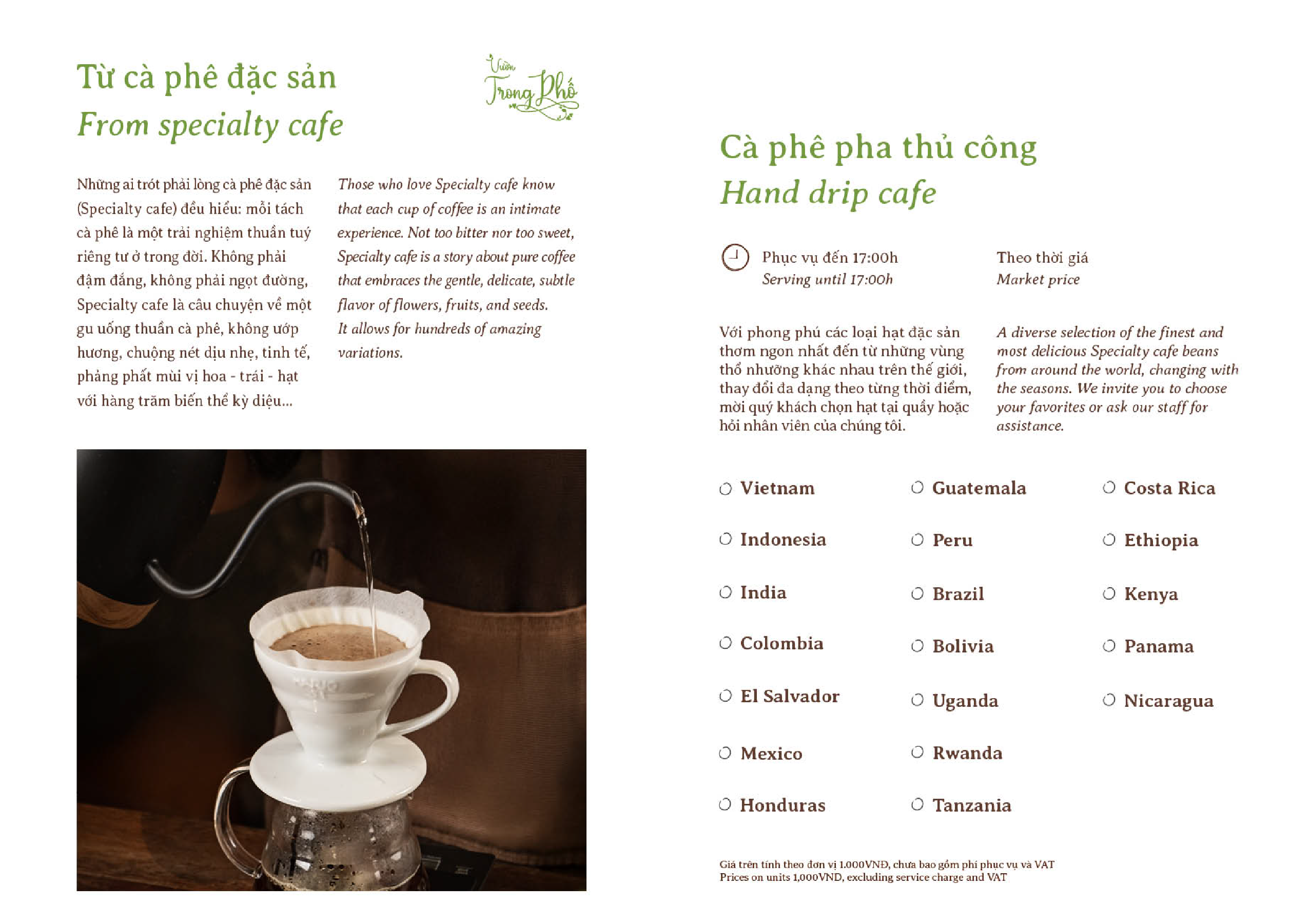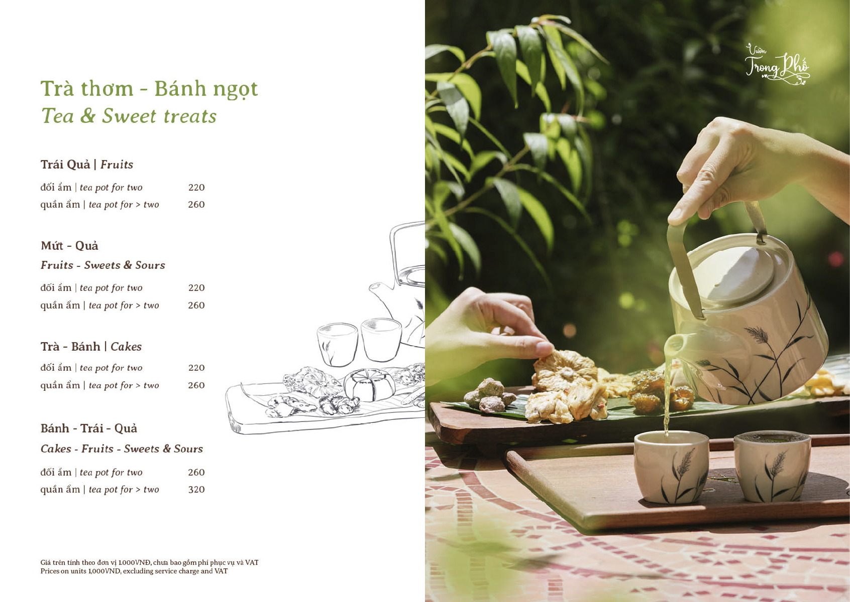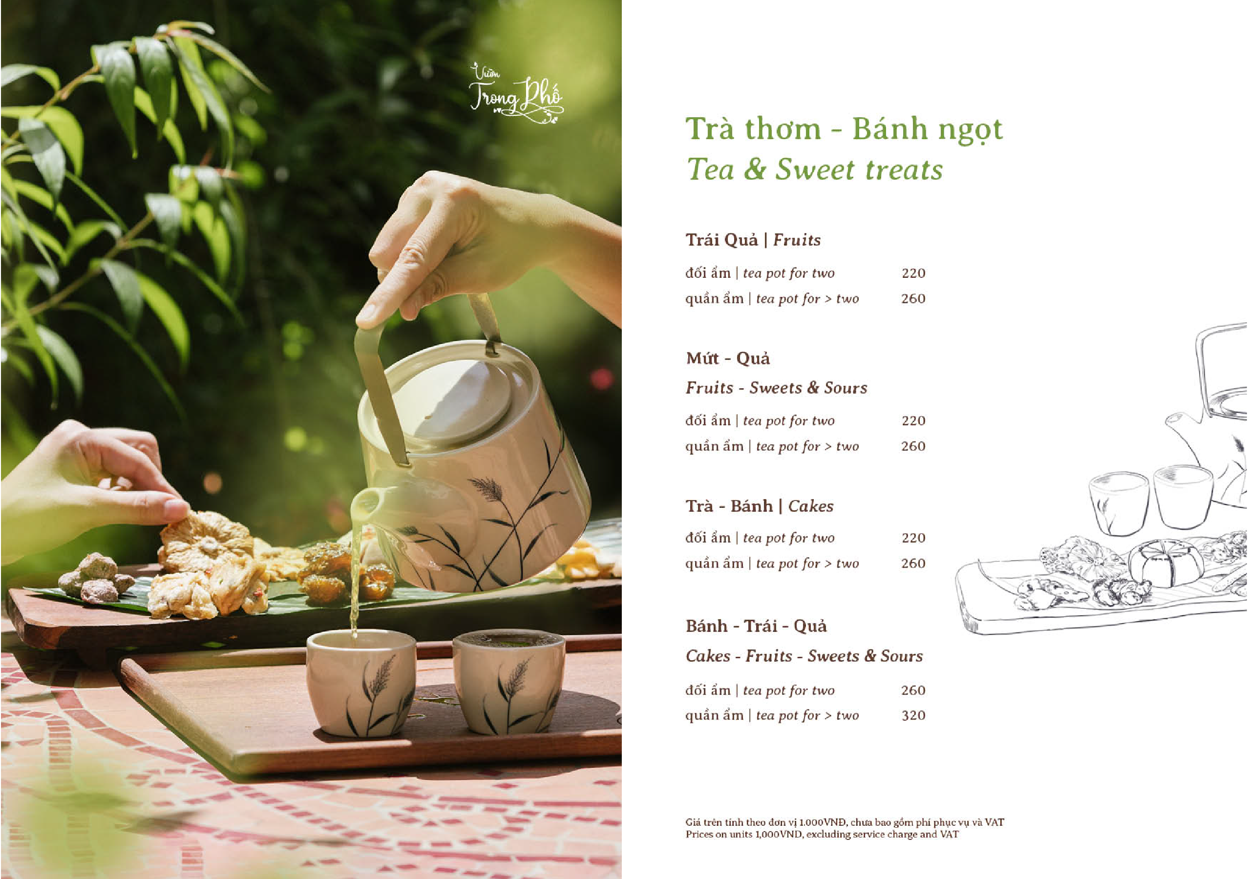 Tại Tao Đàn, Vườn mang đến một khoảng sân vườn riêng tư giữa lòng quận 3, nơi có quầy take-away tiện lợi cùng bầu không khí dịu êm lạ thường