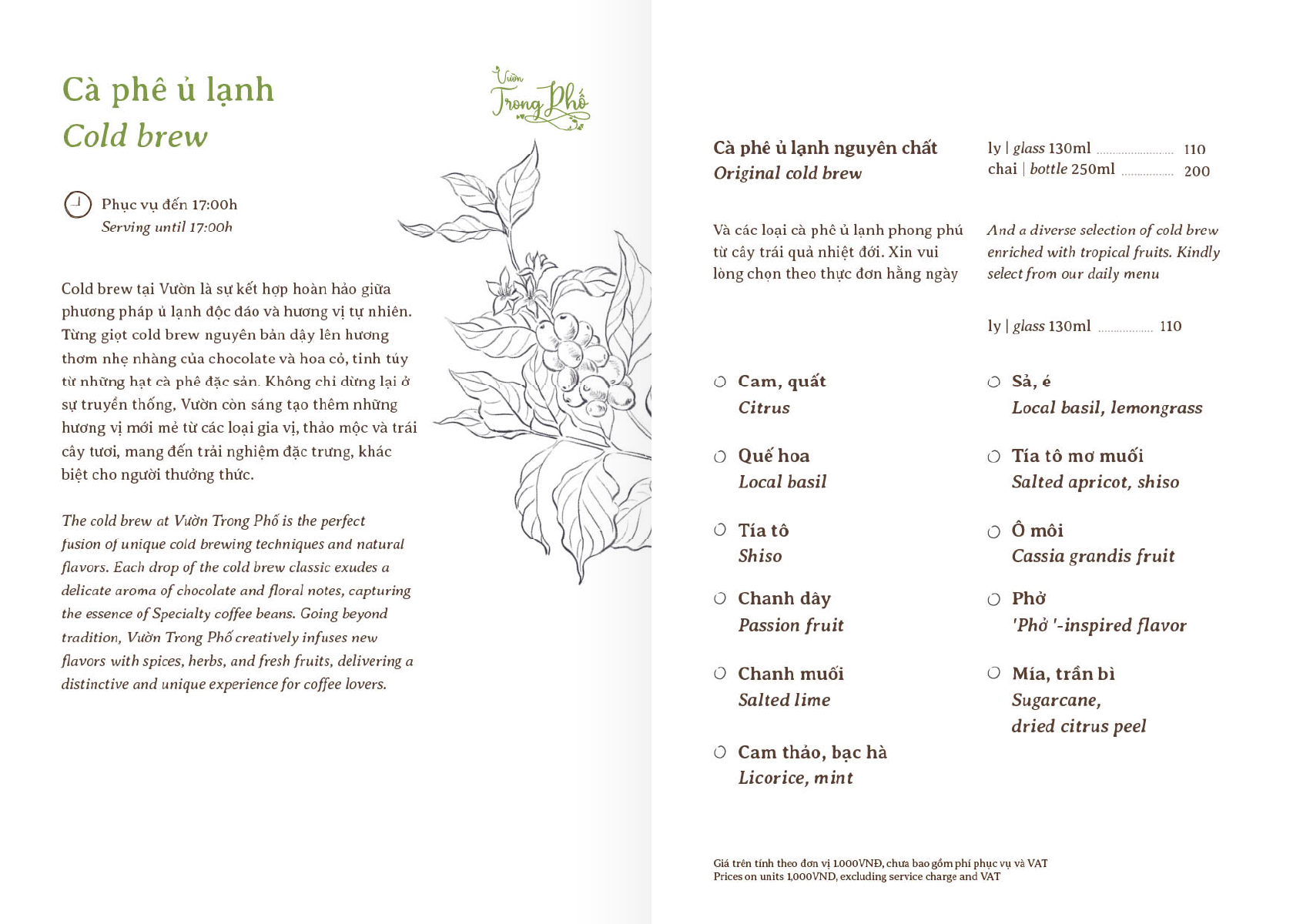 Khi đêm ghé, Vườn bừng lên sức sống, chuyển mình thành chốn thư giãn sau ngày dài. Tại Thảo Điền, Vườn lấp lánh ánh đèn, mời gọi bạn đến những đêm nhạc Chill 9 dịu êm và cocktail sáng tạo.